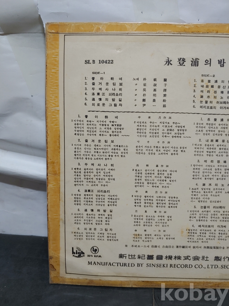 | 자켓상태 | G : 눈에 띄는 손상, 테이프, 필기 존재 | 음반상태 | EX : 재생에 영향 없는 가벼운 기스 존재 | 발매정보 | 알수없음 | 가사지여부 | 무 |