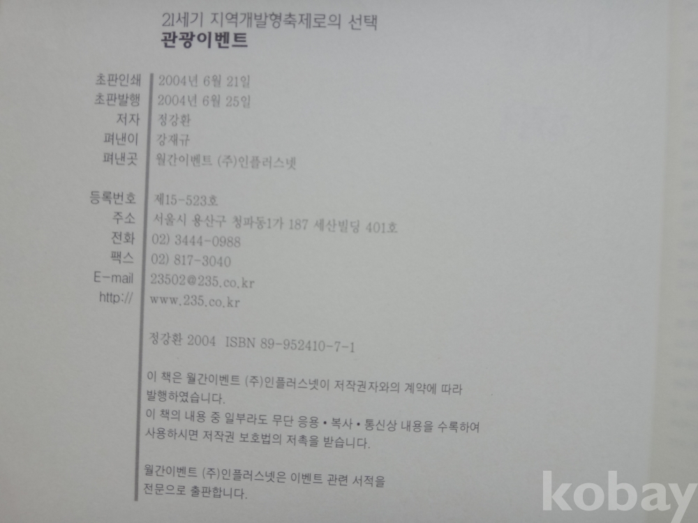 관광 이벤트 - 21세기 지역개발형 축제로의 선택 (2004년, 정강환 지음)