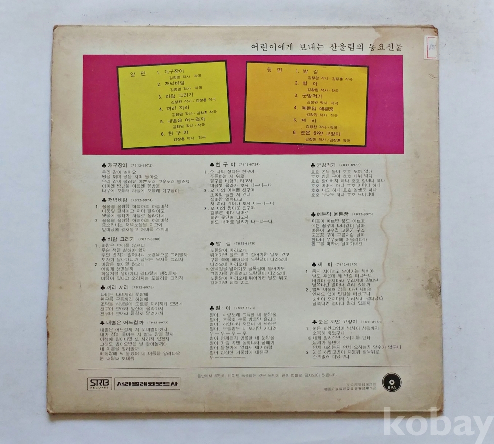 | 자켓상태 | EX : 약간의 마모, 모서리 찢김 존재 | 음반상태 | VG : 생활 기스 다수, 가벼운 노이즈 존재 | 발매정보 | 알수없음 | 가사지여부 | 무 |