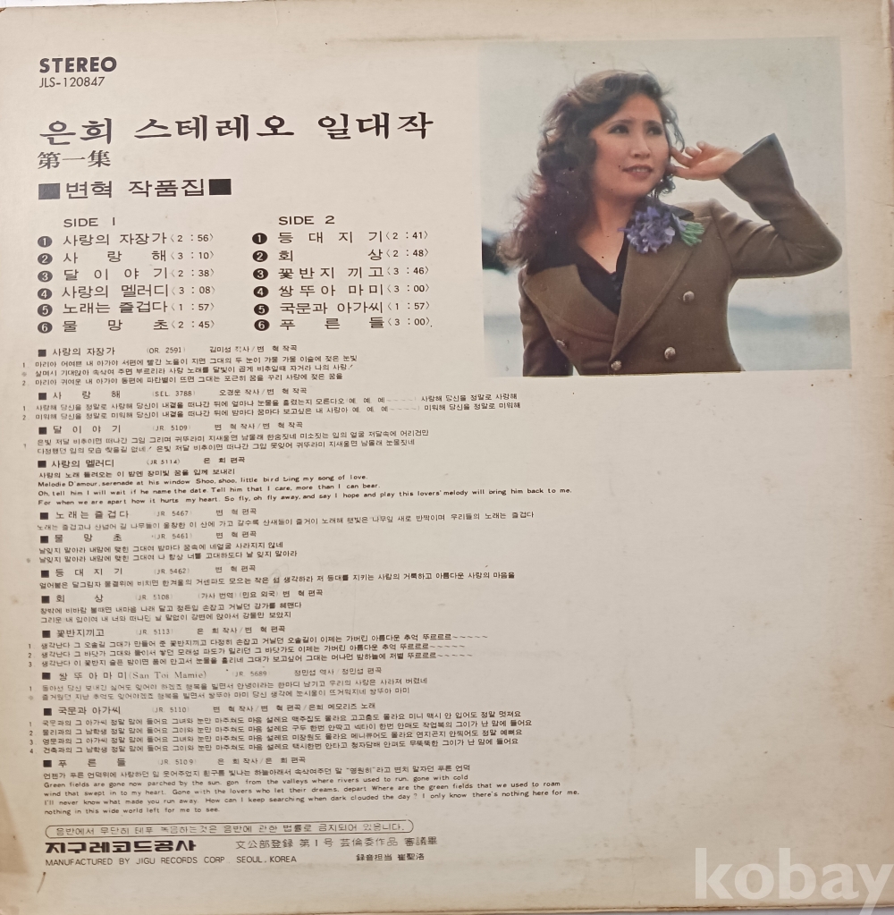 | 자켓상태 | EX : 약간의 마모, 모서리 찢김 존재 | 음반상태 | EX : 재생에 영향 없는 가벼운 기스 존재 | 발매정보 | 초반 | 가사지여부 | 무 |