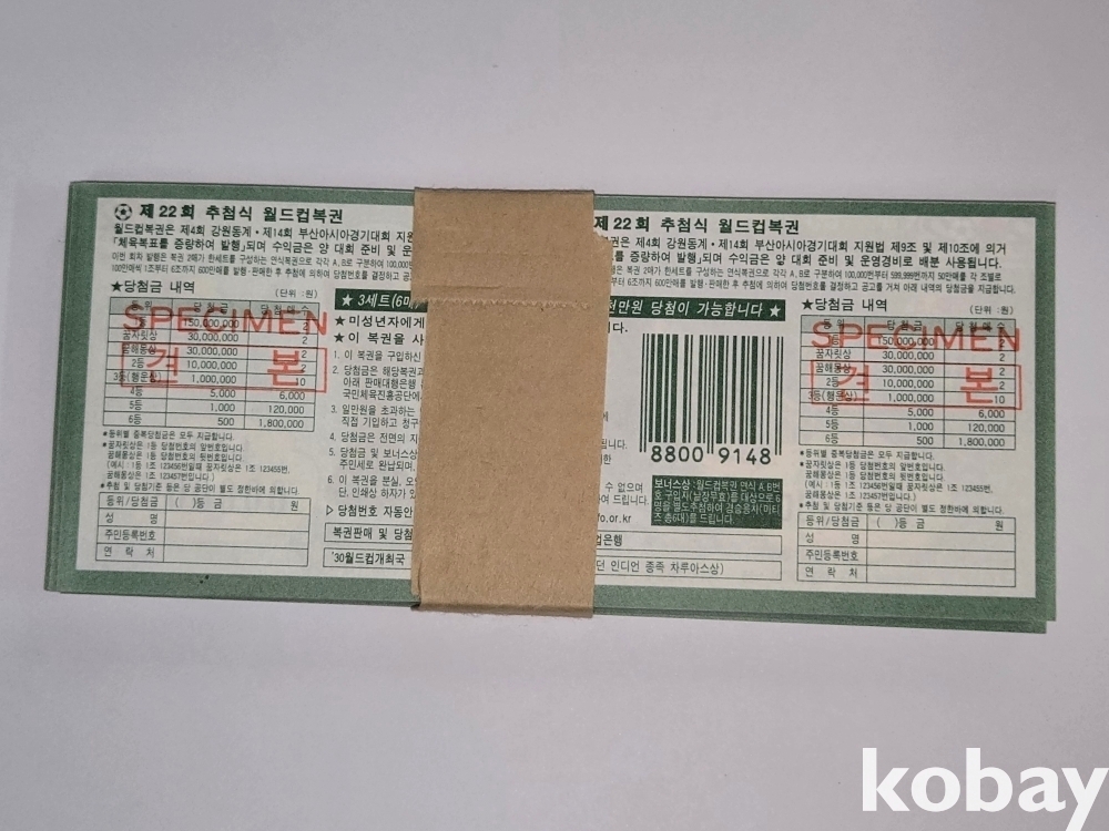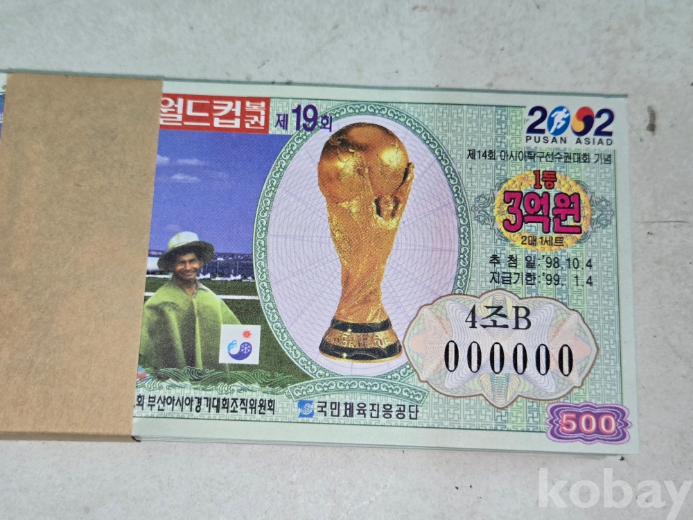 2002월드컵 견본품복권 / 월드컵복권 2조 1세트 94장 다발