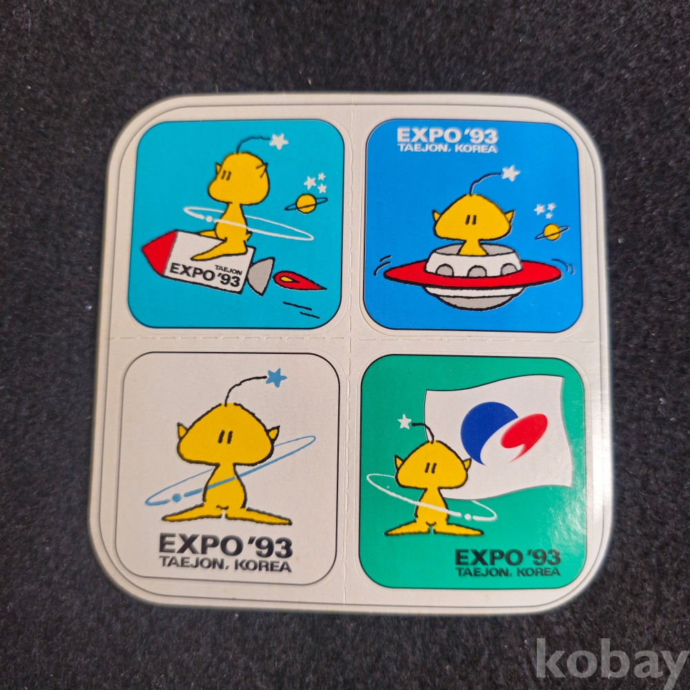 (((근현대사/엑스포자료))) 1993 대전 엑스포'93기념 꿈돌이케릭터 4종스티커 (미사용)
