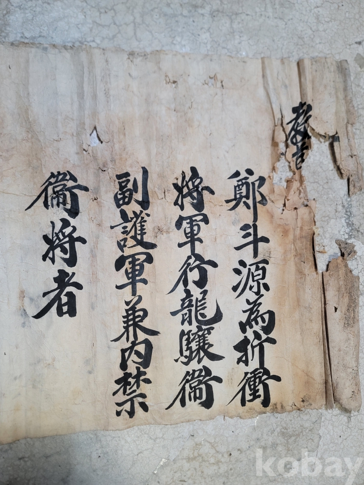 우 상단 한문으로 '교지'라 적힌 부분 오래전 헤짐 흔적 있습니다.