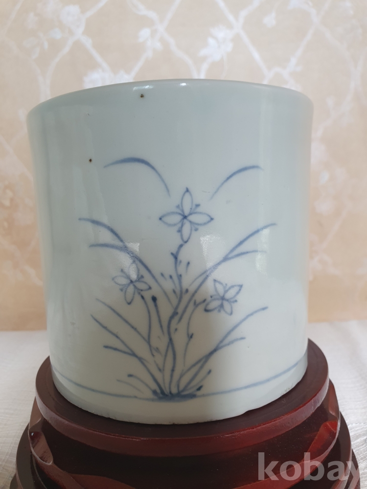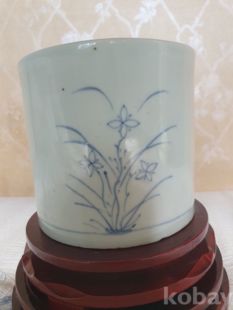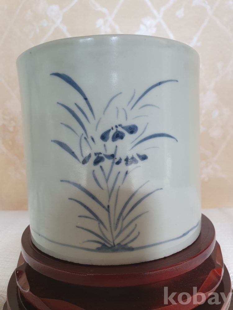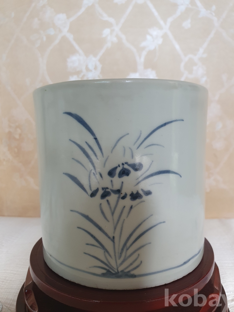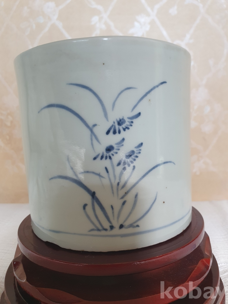 백자 청화초화문 필통 (白磁 靑畵草花文 筆筒)