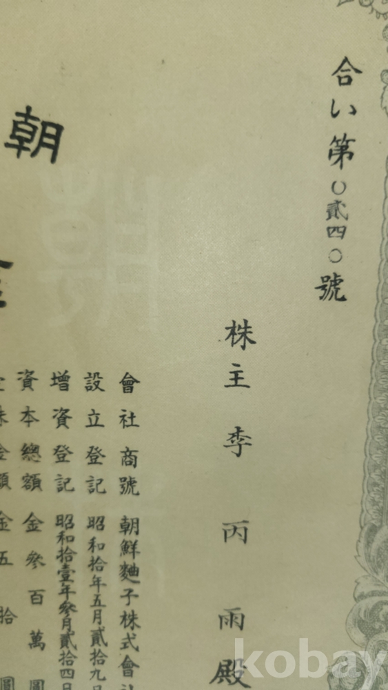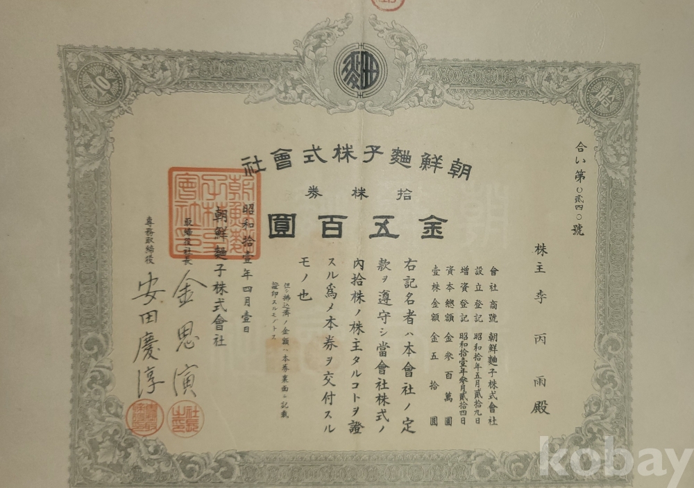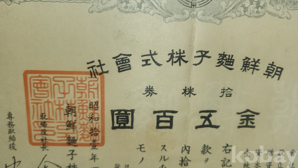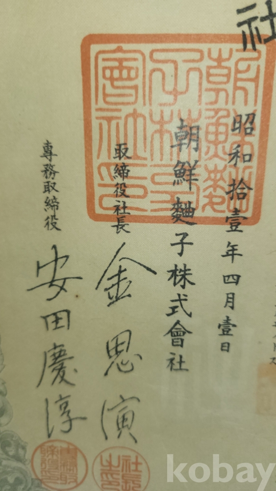 1936년(쇼와11년)조선식산은행 (朝鮮殖産銀行)에서 발행한 주식증서입니다,