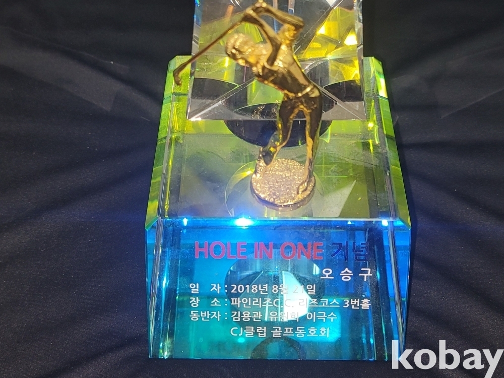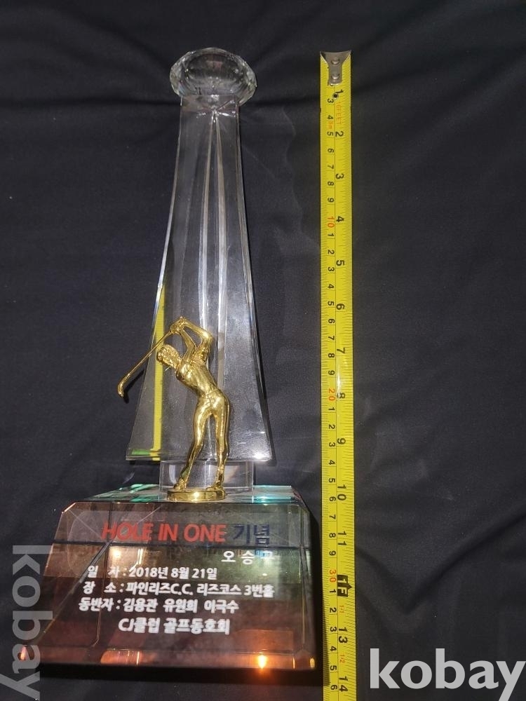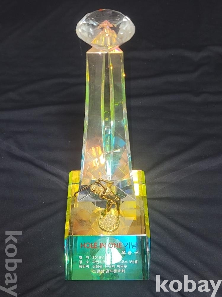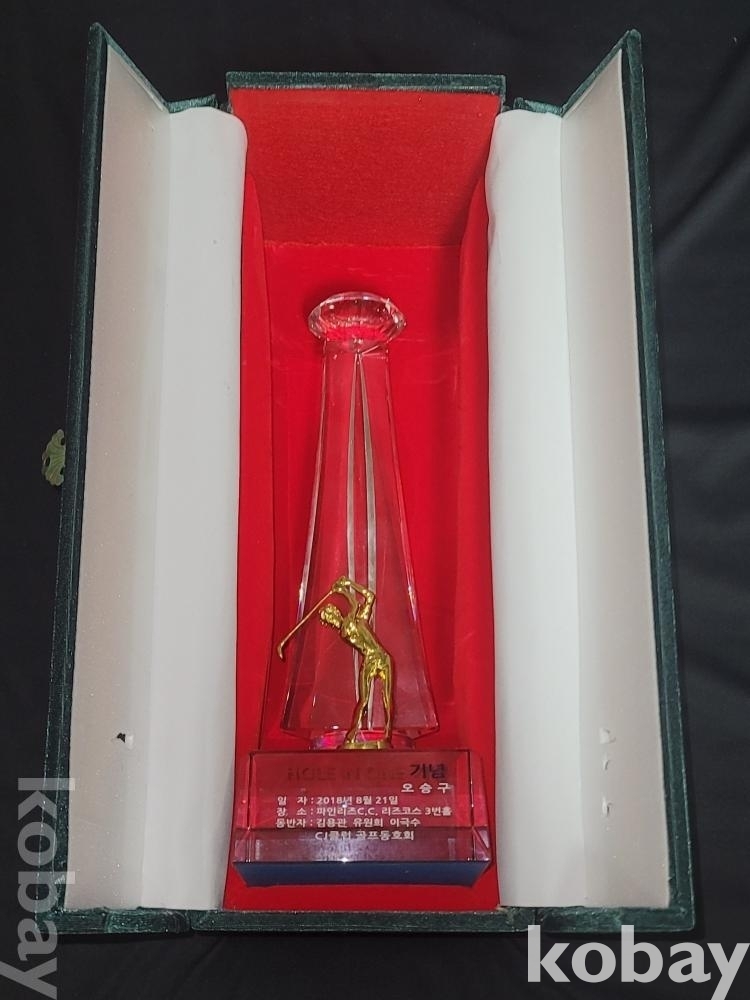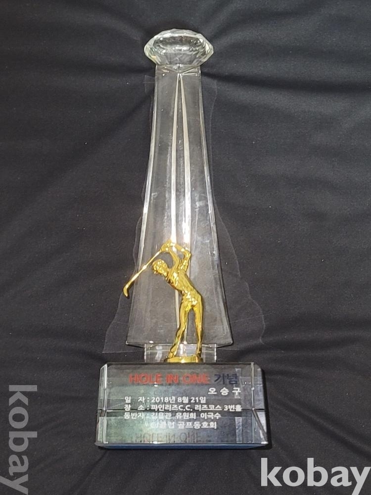 묵직한 2018년 홀인원 기념 골프 크리스탈 상패입니다.
