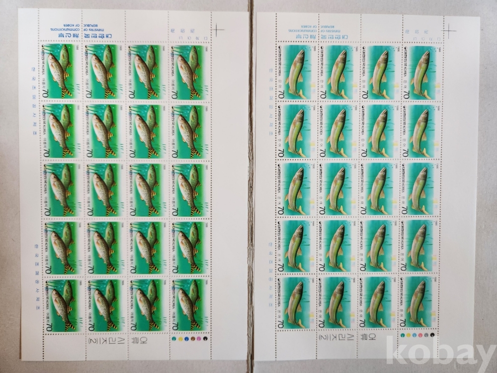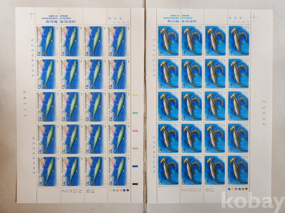 -대한민국 1986년 어류 시리즈 2집 4종 기념우표 전지 입니다.