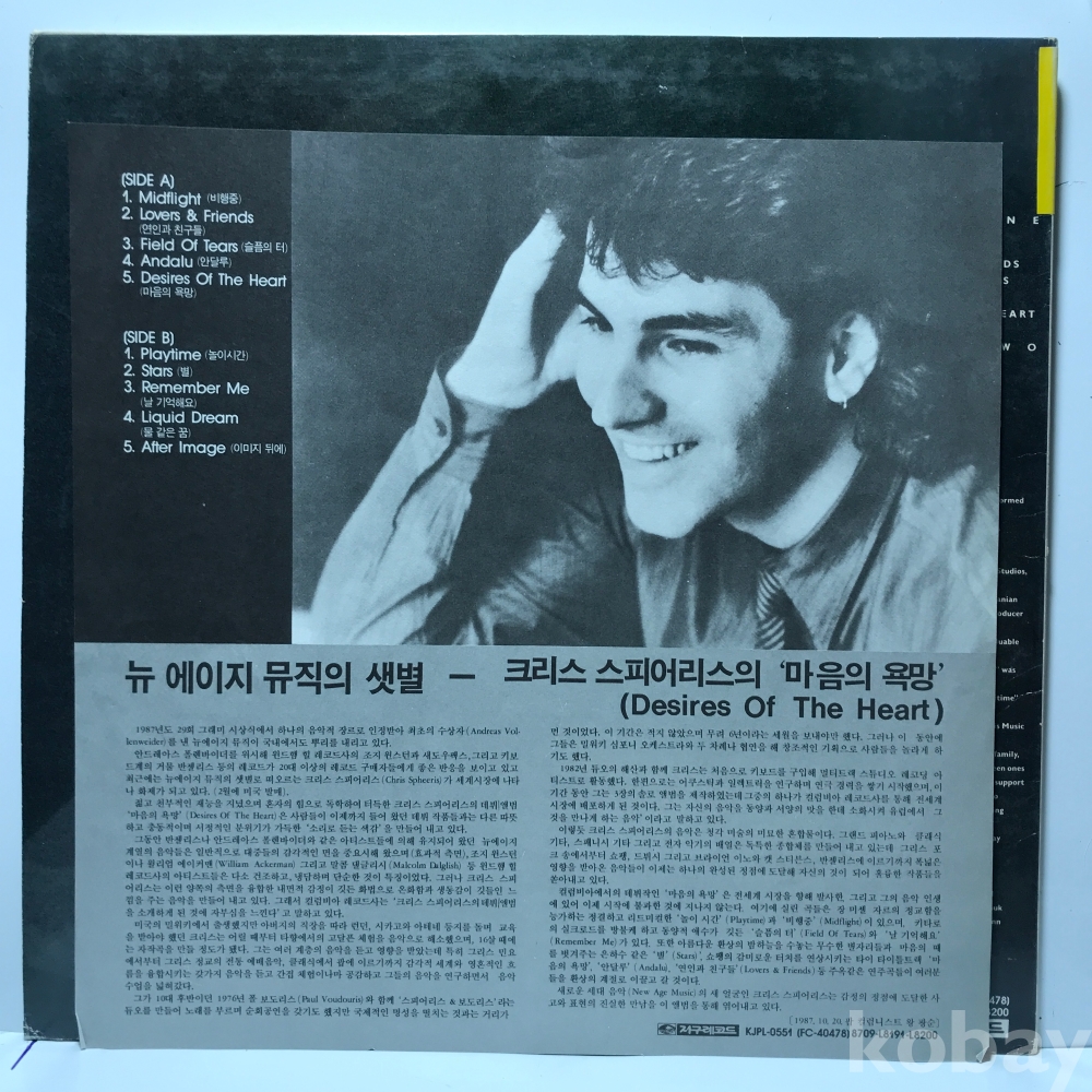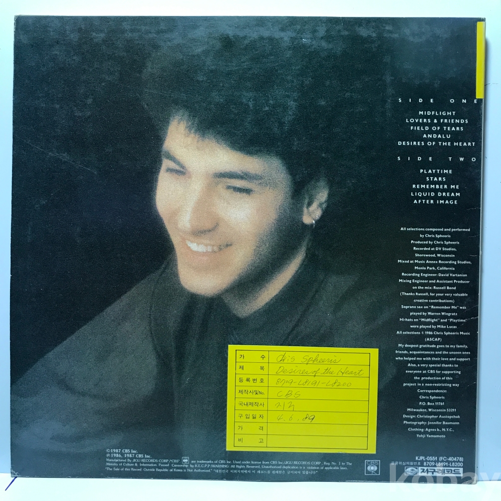 LP 84,010-3 CHRIS SPHEERIS - DESIRES OF THE HEART . 자켓 EX 알판 EX 87 년제작 국내반
