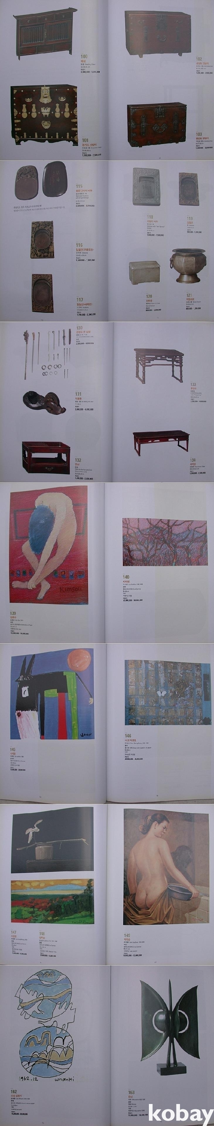 앞에 고미술 작품 목록과 근현대 작가 목록이 따로 있다. 001번부터 구분없이 도판이 이어진다. 토기/청자/분청/백자부터 서화류, 민화, 목기류, 공예품 등이 이어지고 뒤에 근현대미술품을 135번부터 179번까지 따로 구분하여 실었다. 표지화는 김홍도의 대련 작품 중 <해로도> 부분이다.