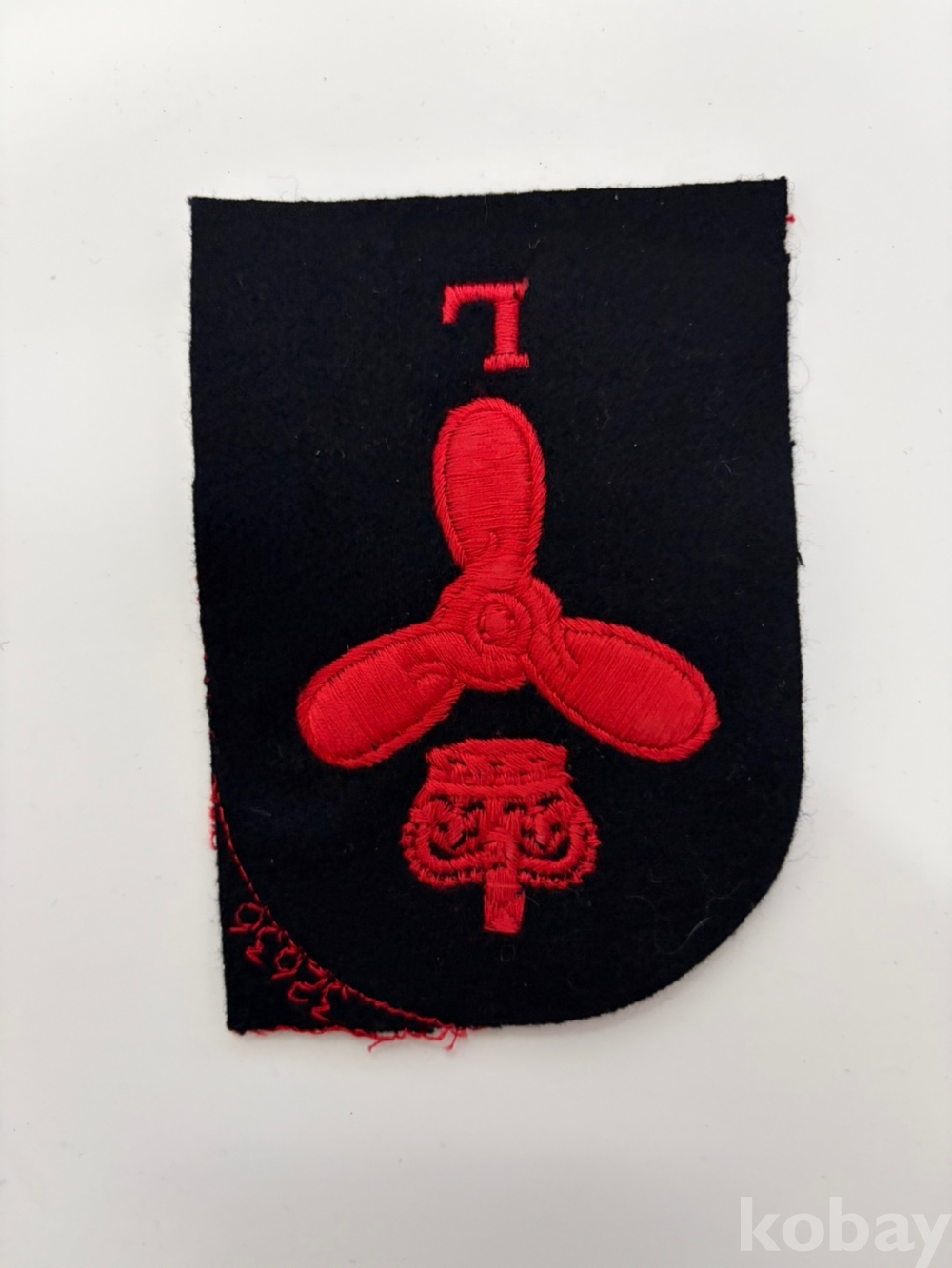 5. 영국 해군 항공대(Fleet Air Arm)의 기술자 계급장으로, 항공기 프로펠러와 'T' 문자가 특징입니다.