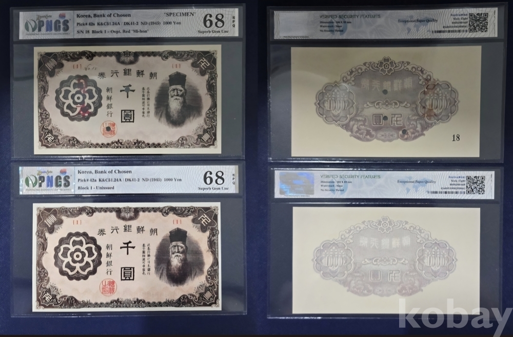 ☆정말 귀한 조선은행권 미발행 갑천원 2종☆ (참고품)