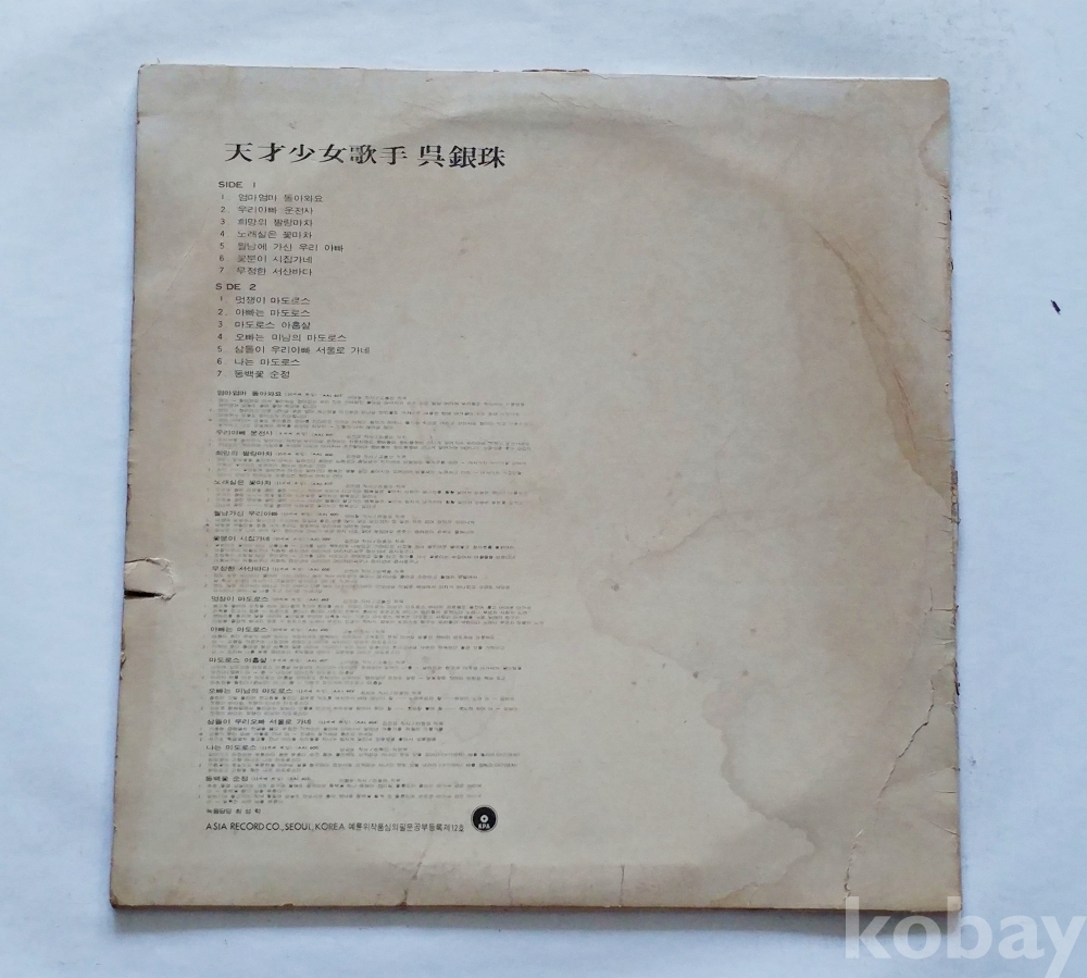 EX : 약간의 마모, 모서리 찢김 존재 음반상태