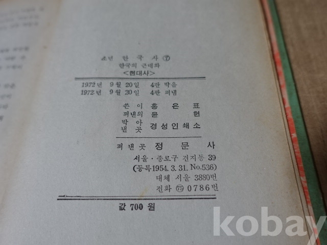 R799) 72년 정문사 발행-현대사[소년.소녀 이야기 한국사7]
