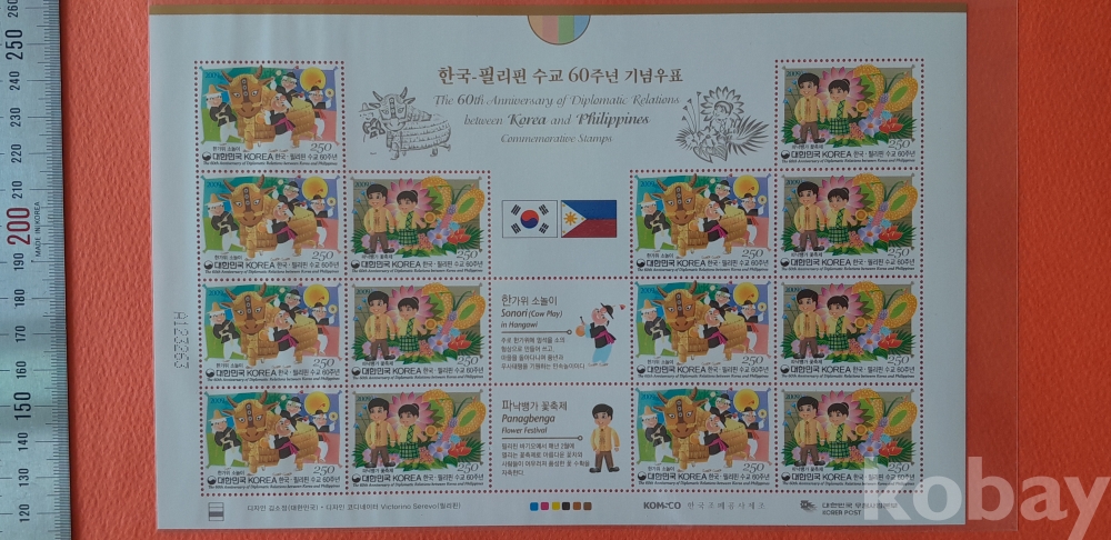 2009 한국 - 필리핀 수교 60주년 250원 14매 전지 입니다.