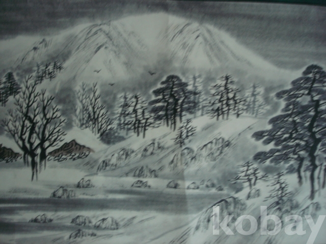 한지에 수묵 설경의 느낌을 잘 표현한 작품으로 상태도 아주 양호함.