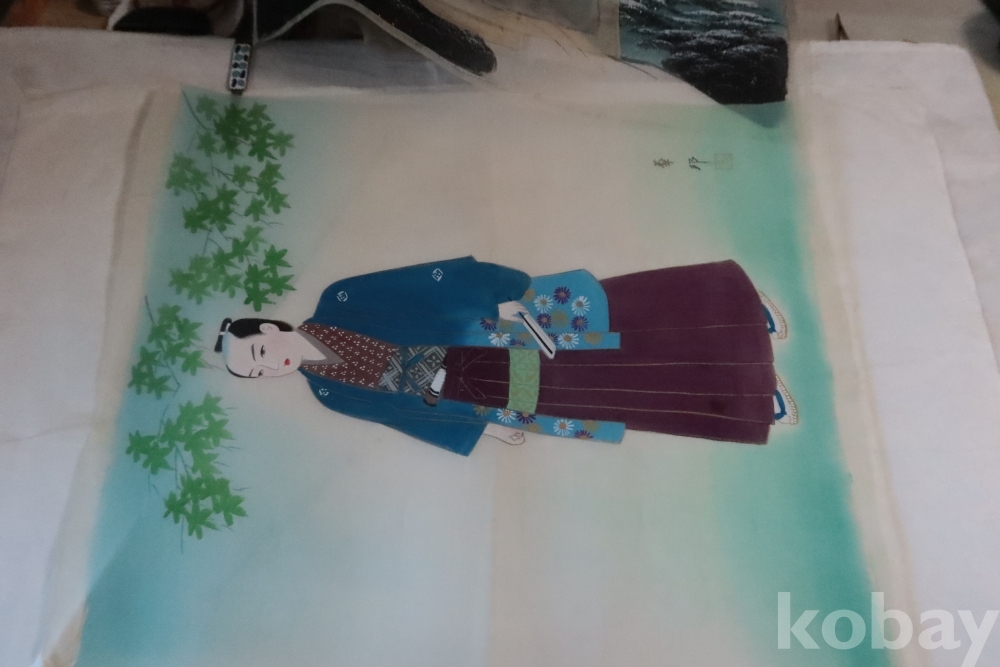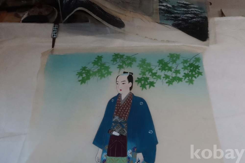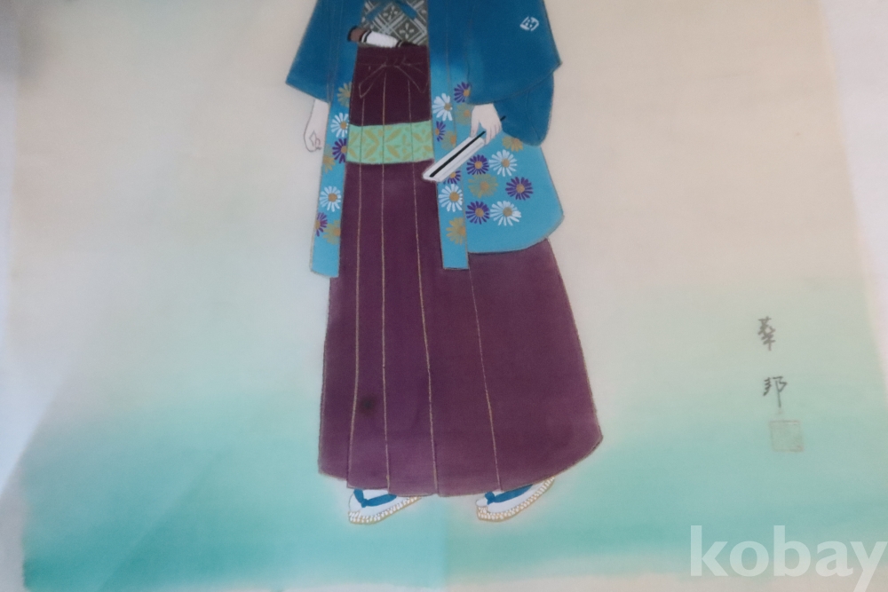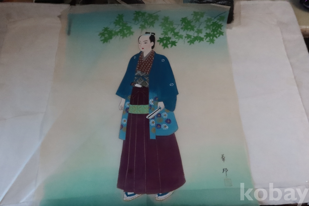 멋진 일본 남자 비단화 임니다 1930대 임니다 우아함과 정성을 가진 명화 임니다