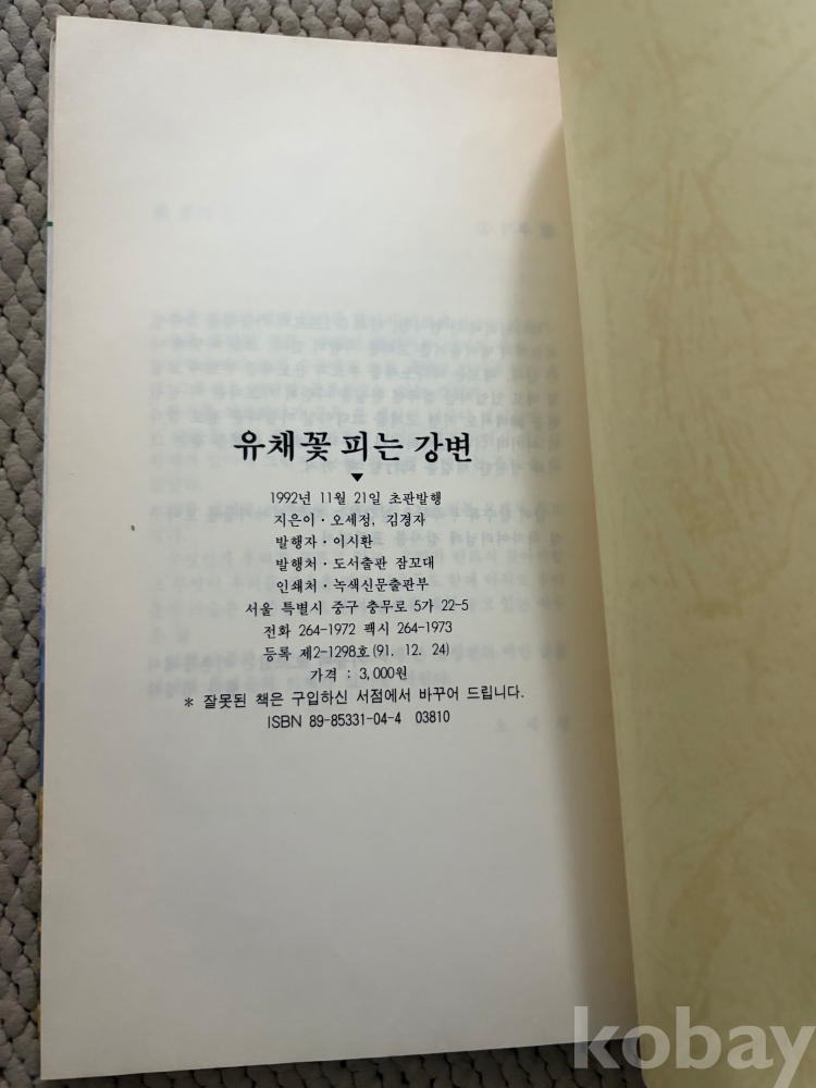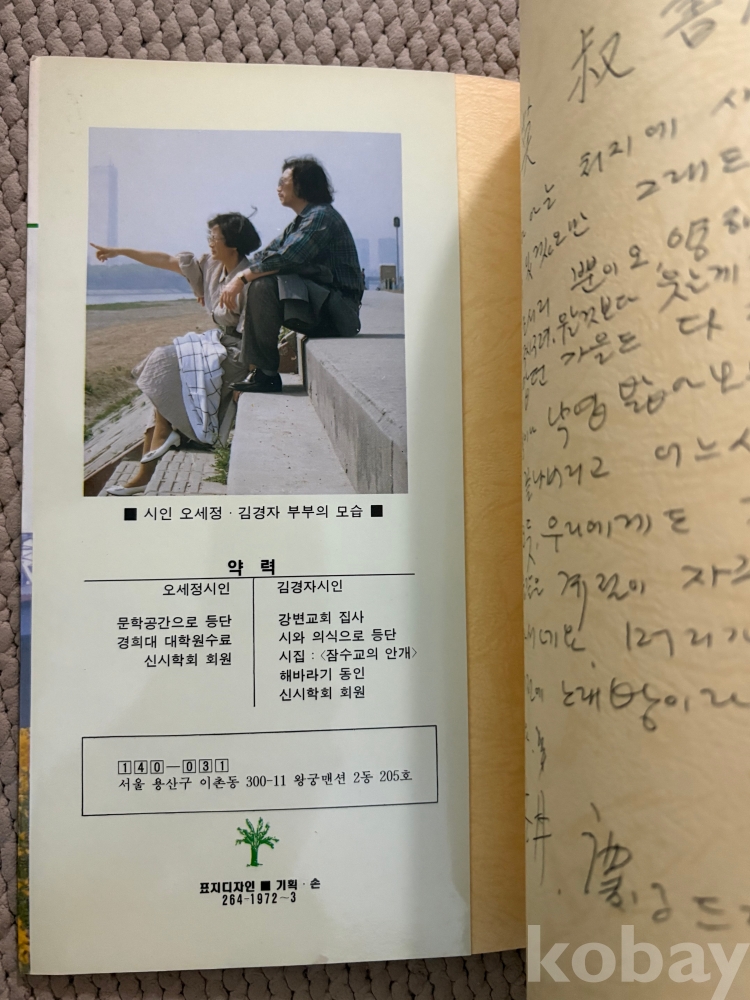 ★시집 '유채꽃 피는 강변' 오세정,김경자시집 (초판)1992년 -작가서명있음!