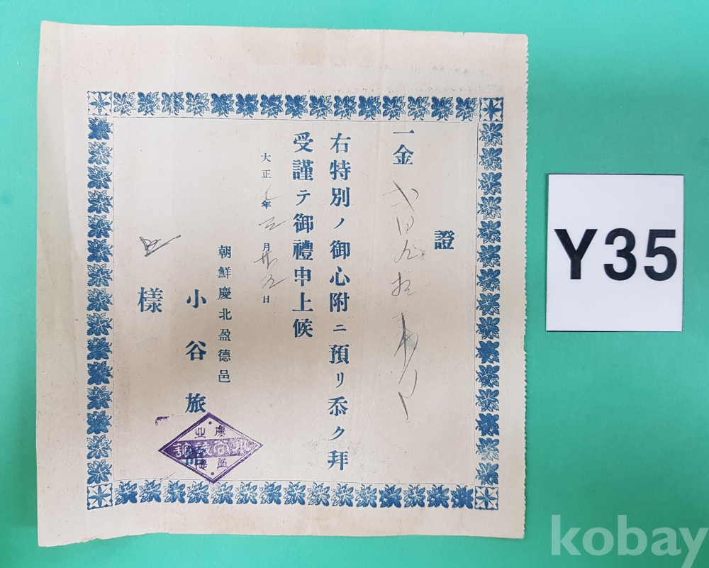 **** 1920년 영덕읍 小谷여관 영수증