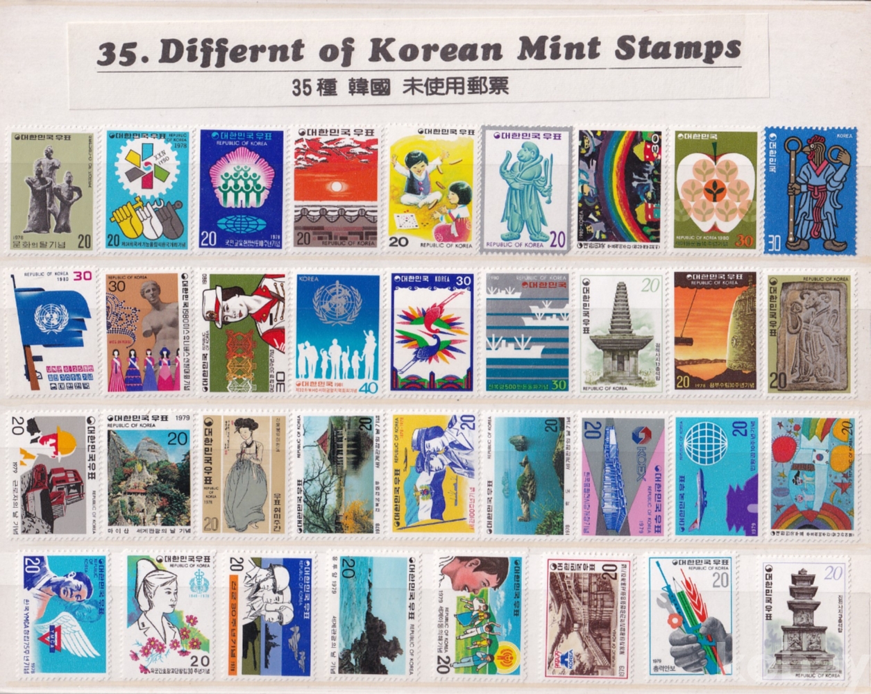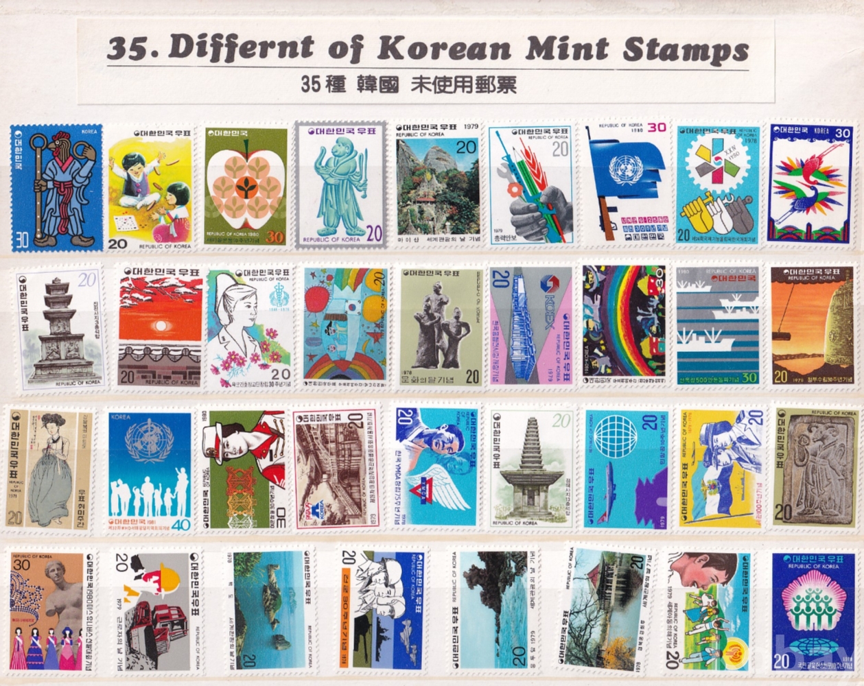 - 미사용 다양한 1970년대 우표 35매 2점 , 총 70매 모음