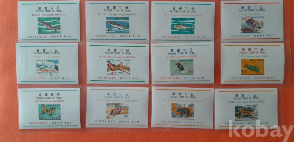 1966년 발행 동물시리즈 1집-4집 총12종 완 세트 입니다.