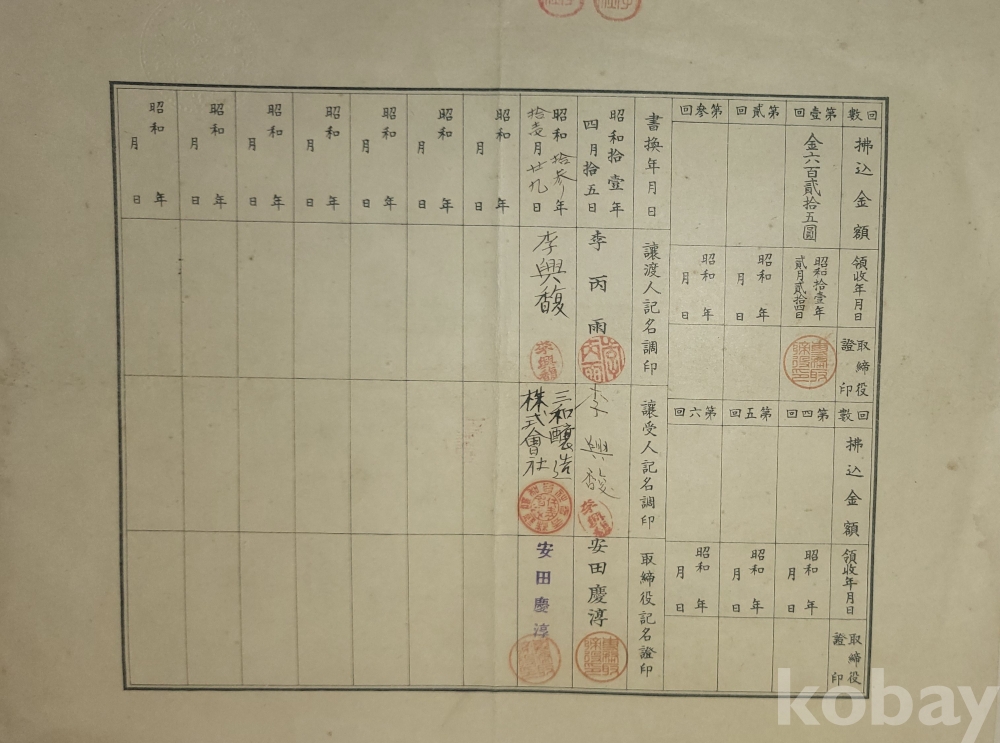 많은 식산은행 자료가 시중에 유통되고 있으나 이처럼 크기가 크고 뒷면의 명시 내용이 확실한 자료는 매우 귀한 편입니다,