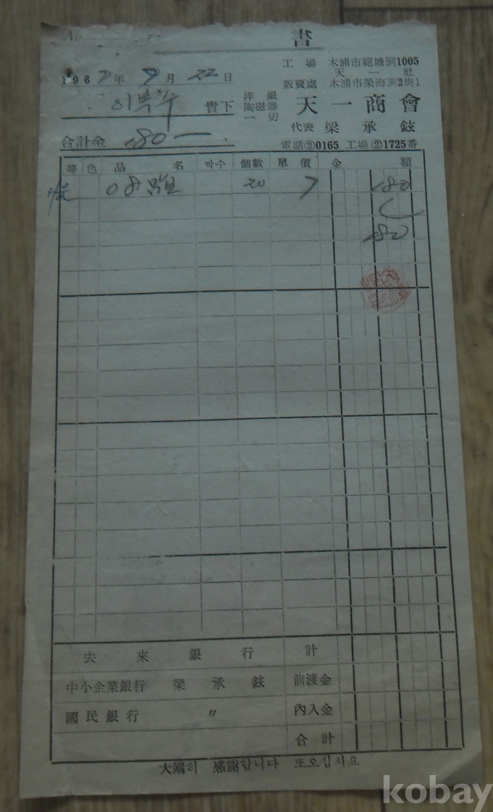 옛 영수증(계산서): 1969년 천일상회(목포)