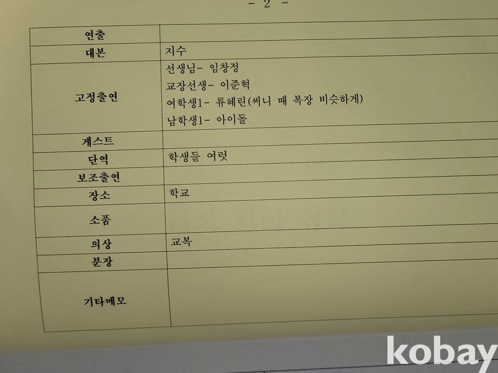 대본이 어떤 형식으로 쓰여있는지 볼 수 있습니다.