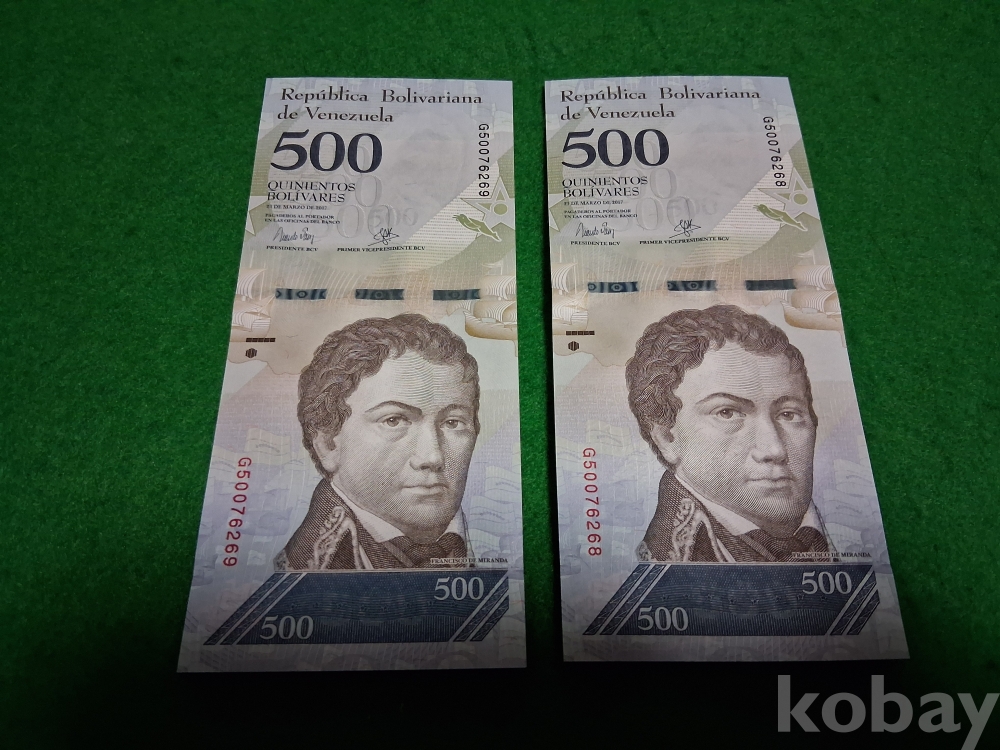 (외국지폐) 베네수엘라 연번호 지폐2매-미사용