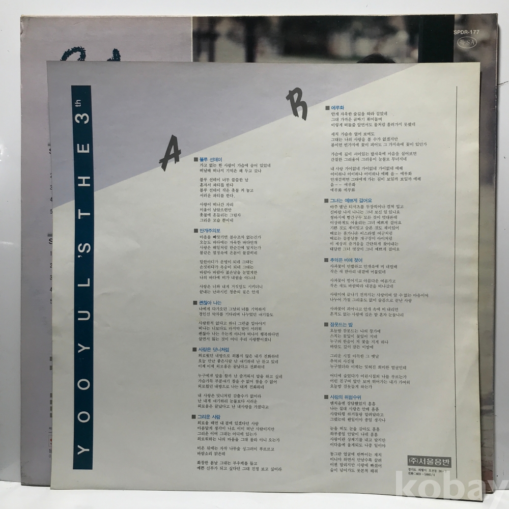 LP 36,250-66 유열 3집 - 블루 선데이/ 에루화 . 89 서울 자켓 EX 알판 EX+