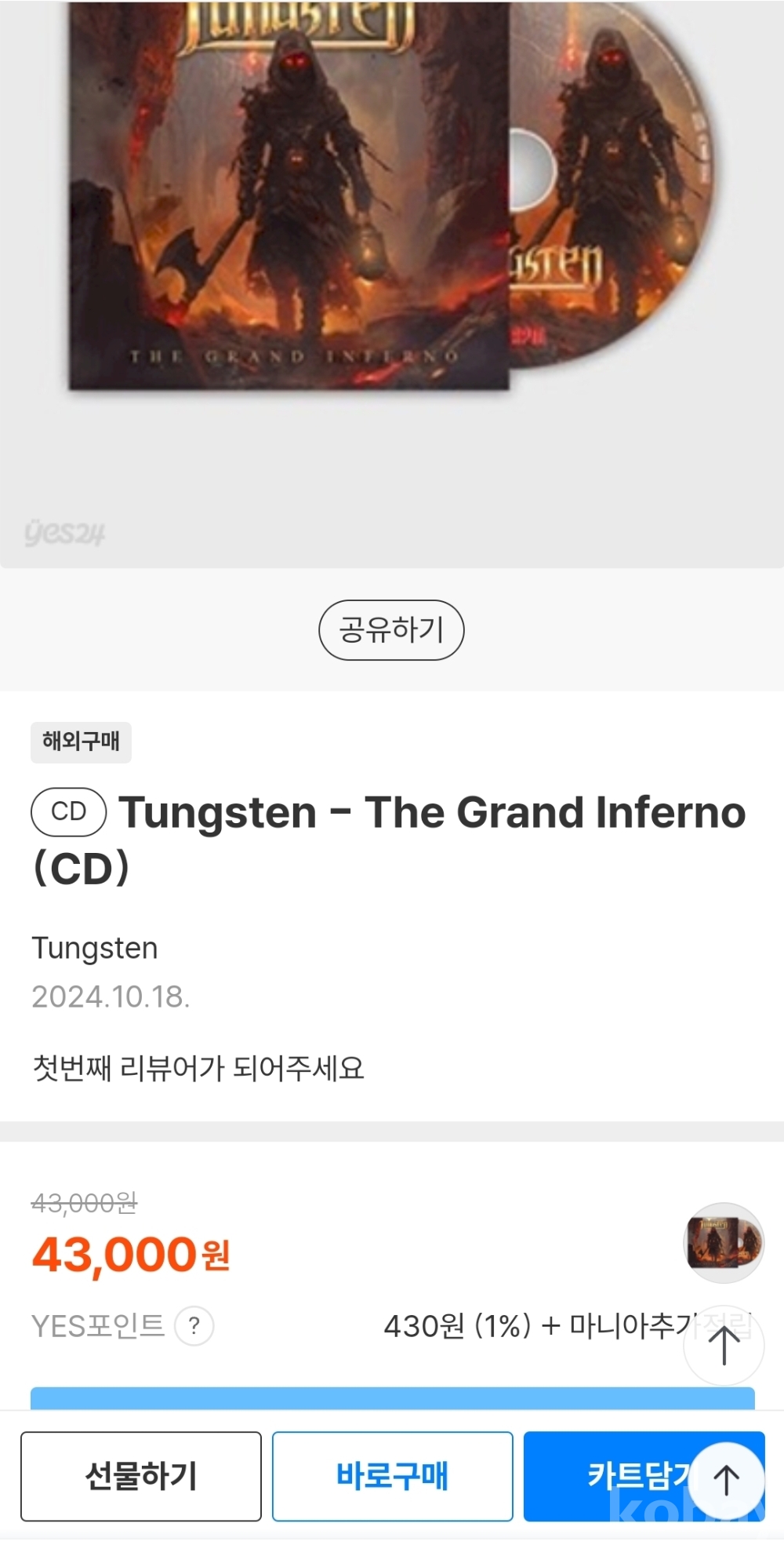 | CD 상태 | SS : 미개봉, 손상 없음 | 북릿/케이스 상태 | SS : 미개봉, 손상 없음 |