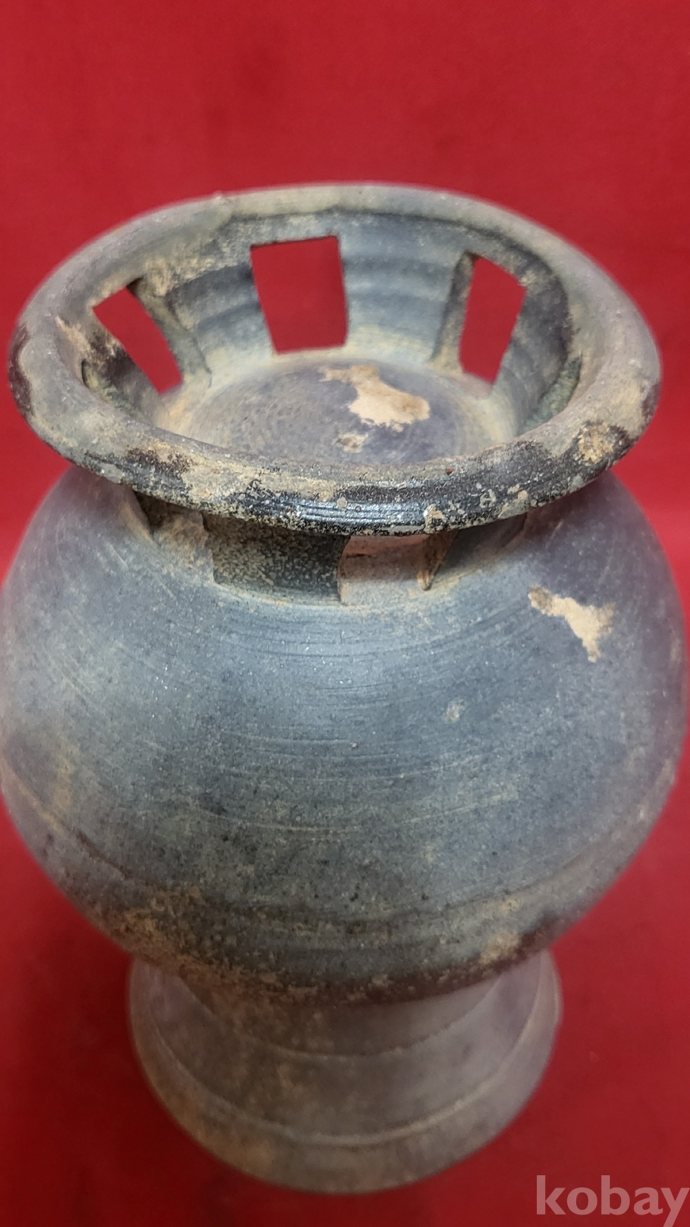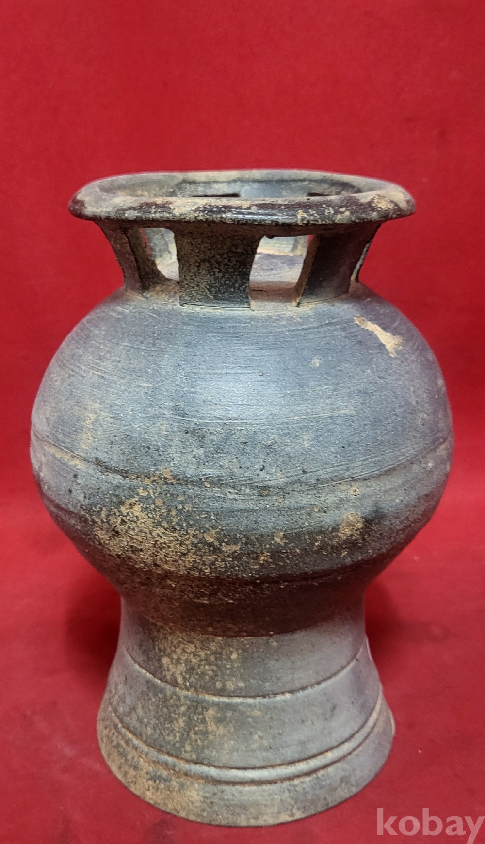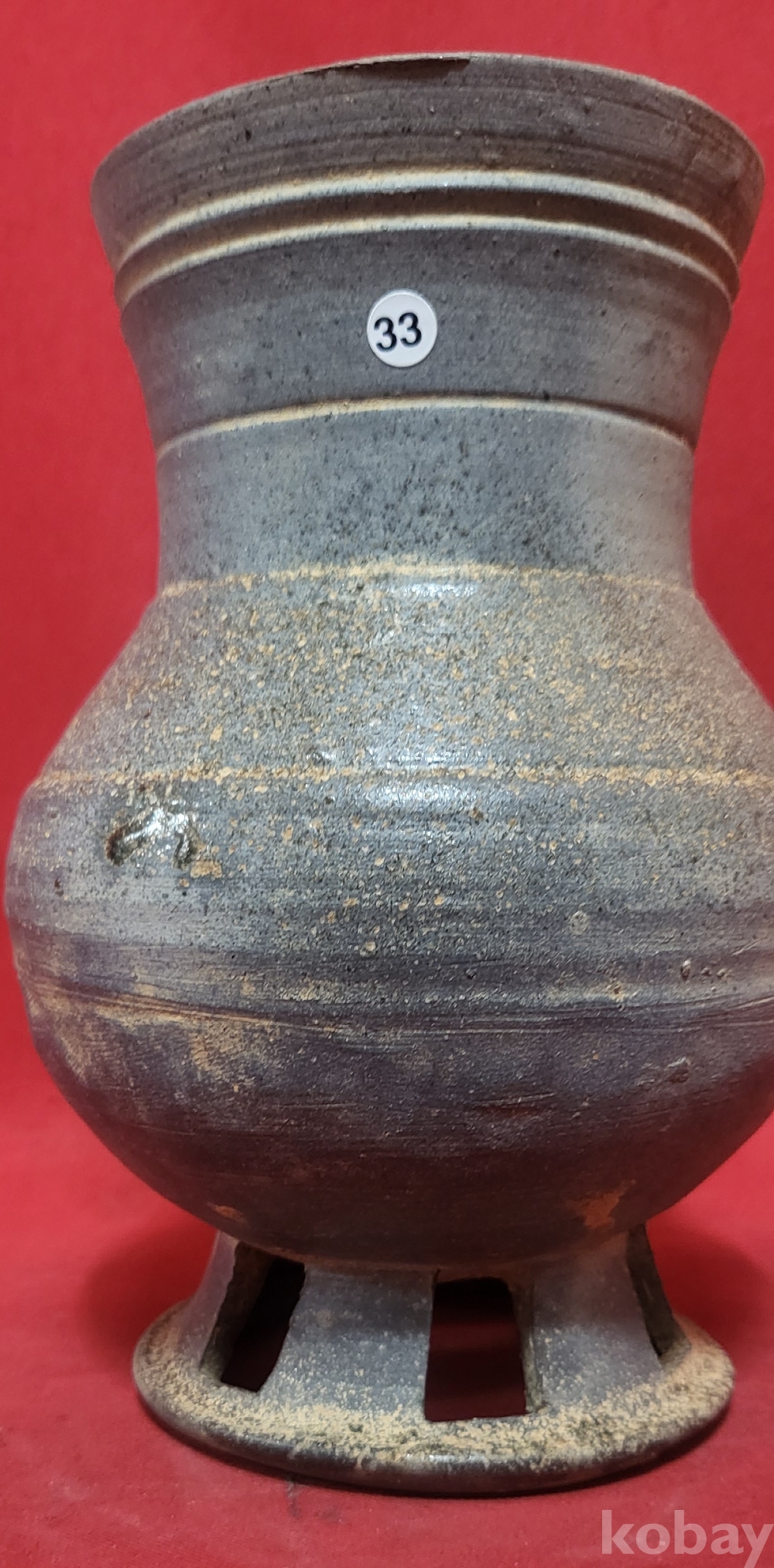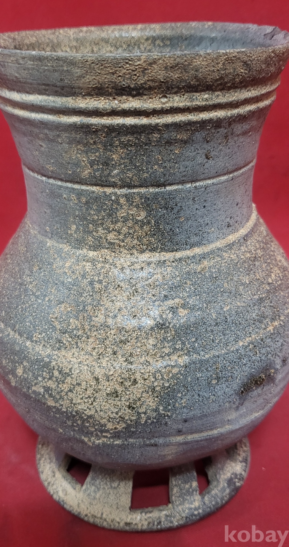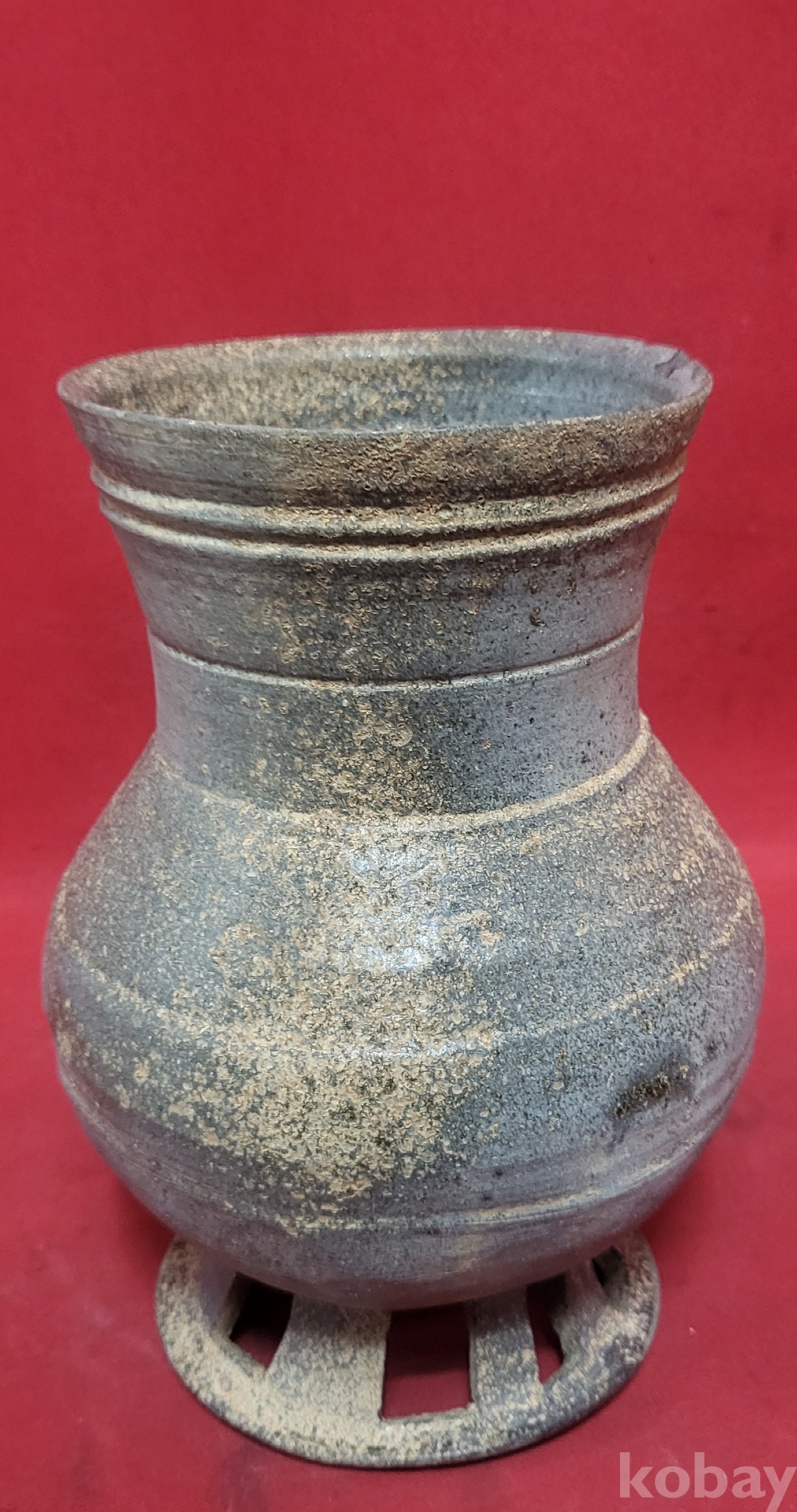 신라토기( 新羅土器) 줄(線)문양 굽다리 접시 진품입니다,