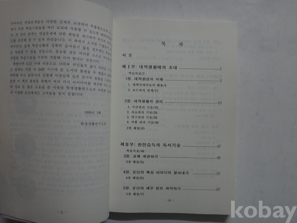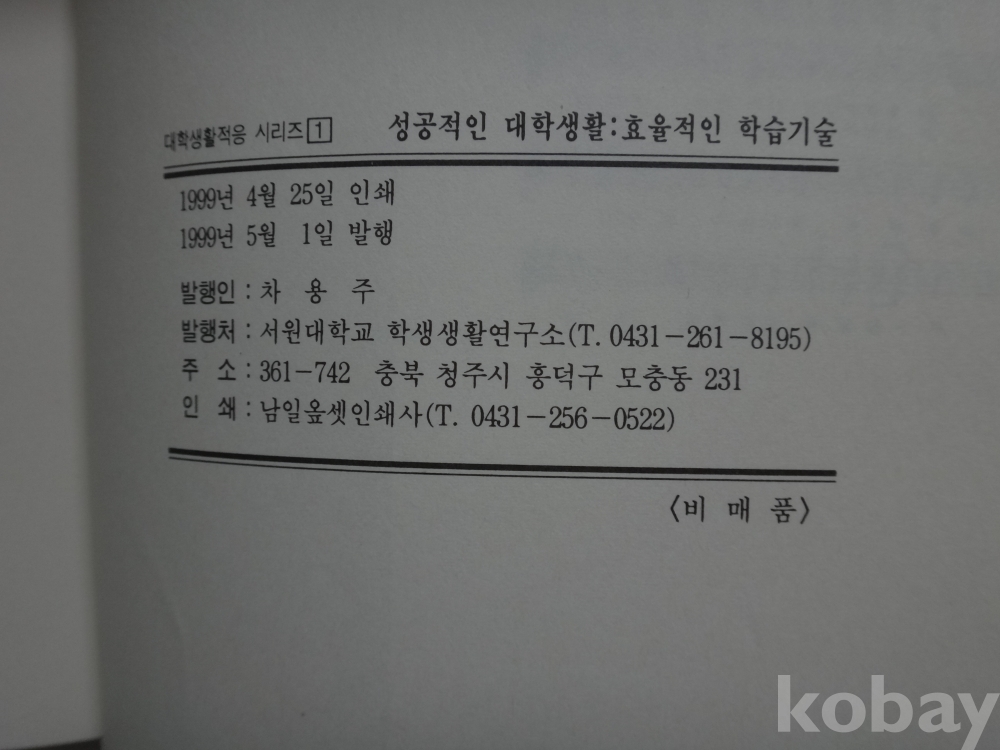 성공적인 대학생활 - 효율적인 학습기술 (1999년, 서원대학교 학생생활연구소)