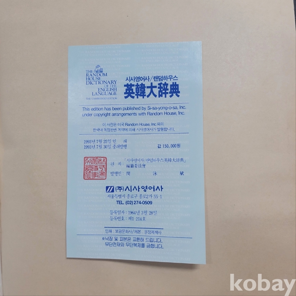 시사영어사 랜덤하우사 영한대사전 (1993년 발행) : 중급, 세월흔적 등