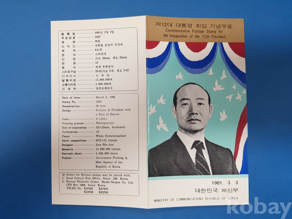 **** 제12대 대통령 취임 기념우표/1981.3.3/대한민국 체신부