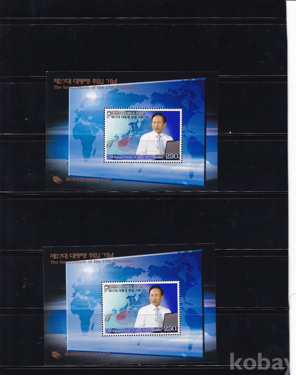 - 미사용 2008년 제 17대 이명박 대통령 취임 기념우표 시트 2매 일괄