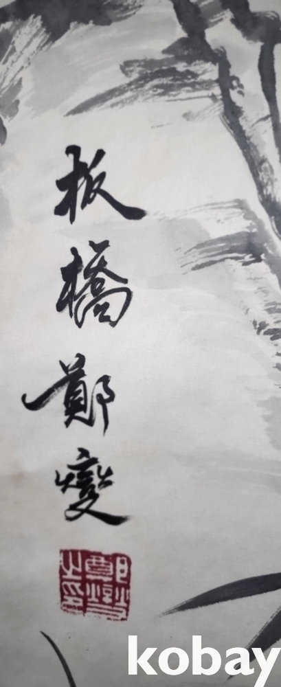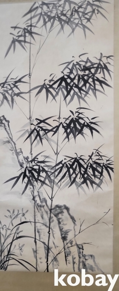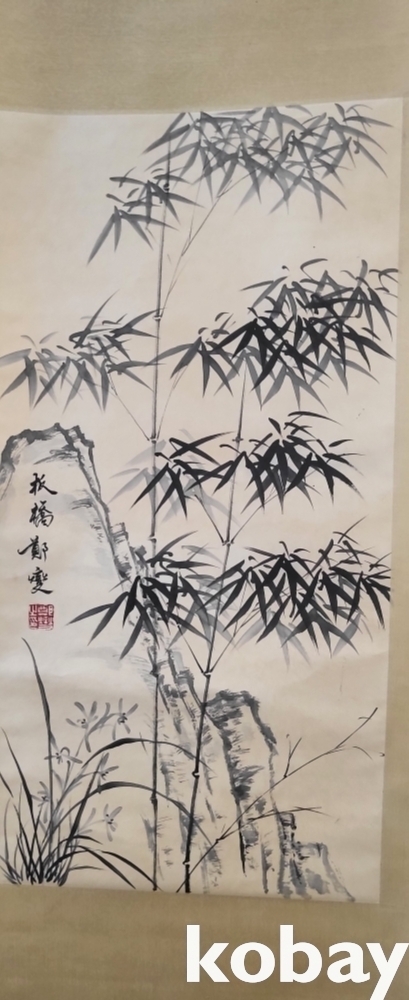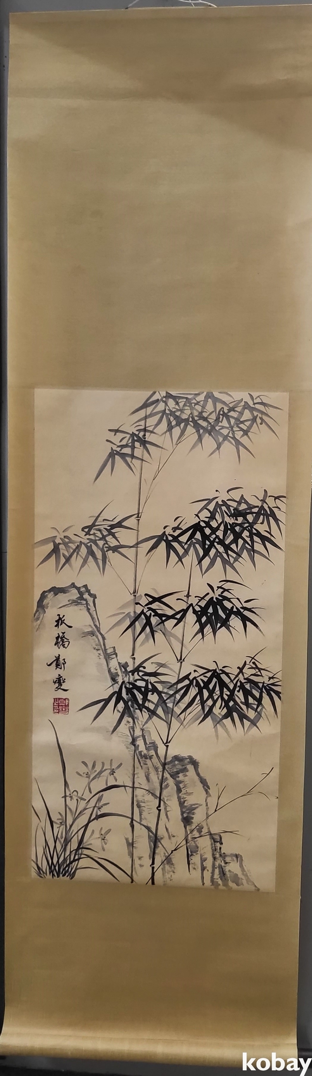 중국화가 정판교 수결이 보이는 종이에 채색한 대나무 족자입니다,