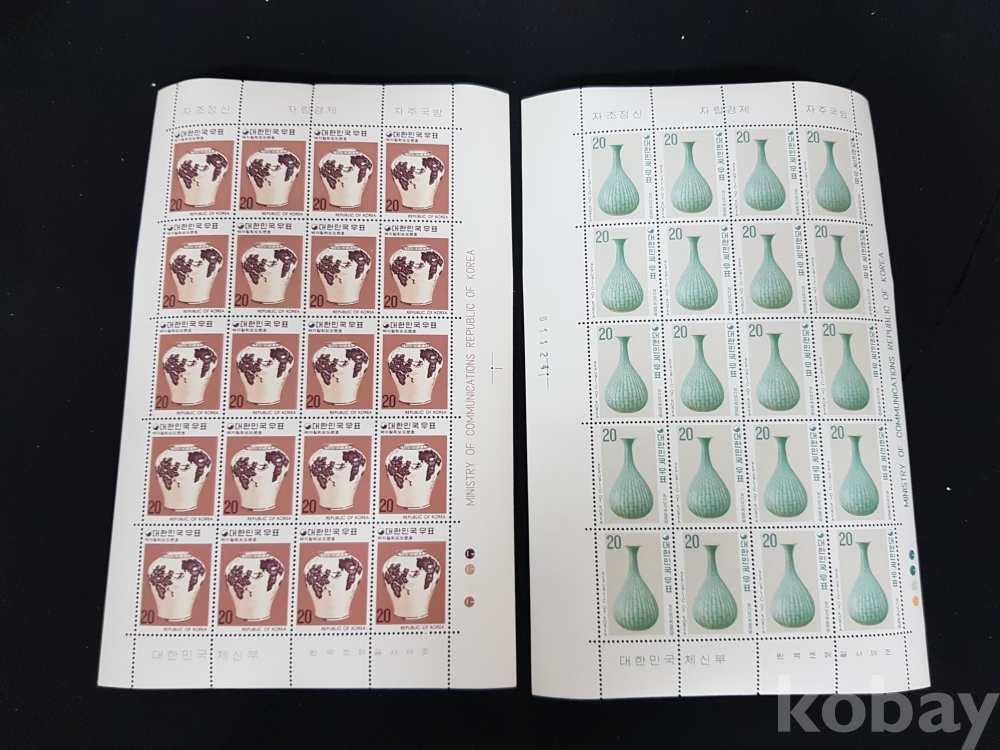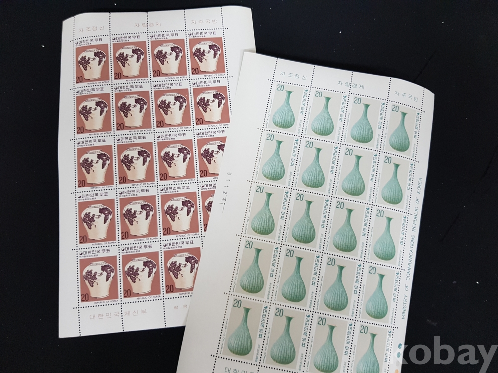 - 미사용 1977년 도자기시리즈 - 제 1집 전지 2종 모음