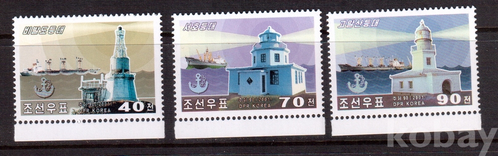 (등대) 북한 2001.8.18 등대 3완 MNH