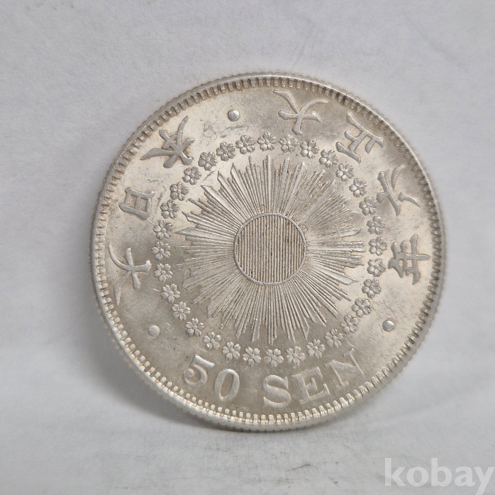 - 진품 일본 은화 - 대정(다이쇼) 6년(1917년) 오십전 욱일 은화