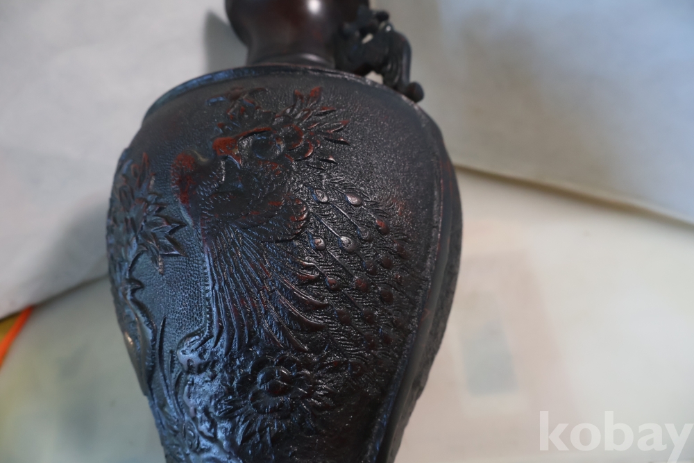 대형 청동 임니다 공작새의 문양을 가진 귀한 명품 이며 무개감 섬세 정교한 당대의 명품 임니다 두손으로 들어야 함니다 무감이 대단 함니다