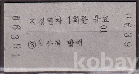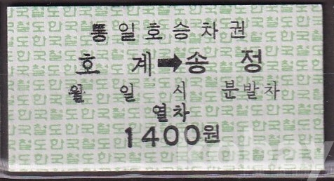 - 미사용 통일호 승차권 " 호계 ▶ 송정 " 1400원