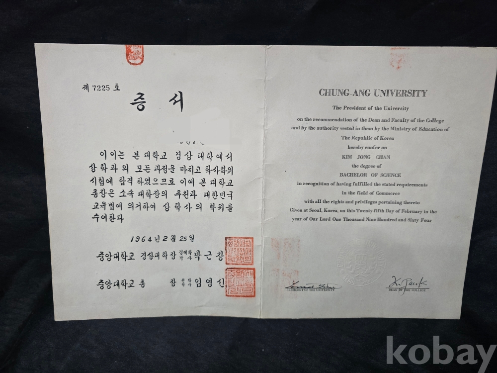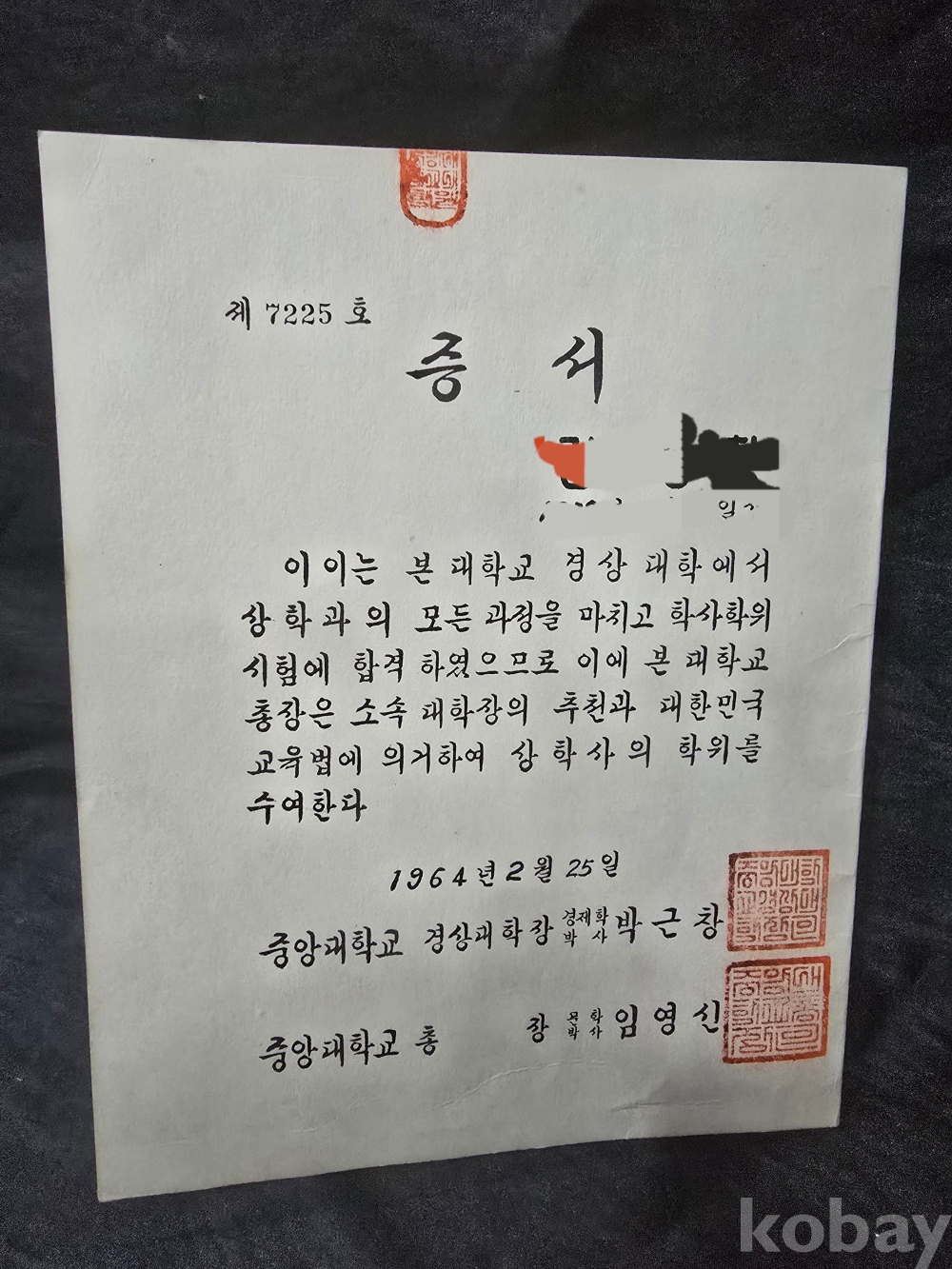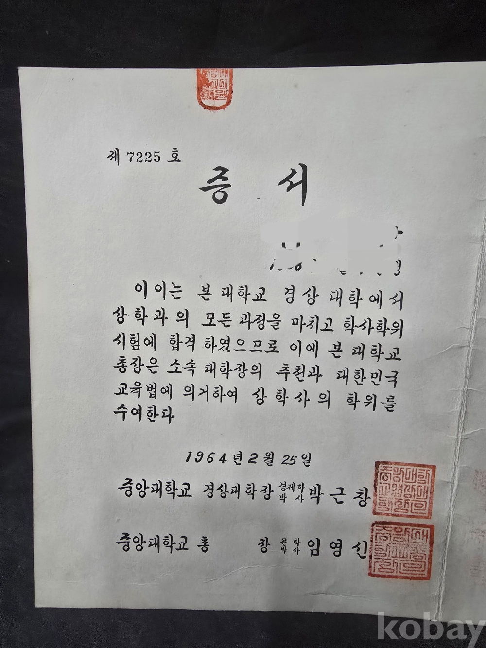 근대사자료/ 1964년도 상학사 학사학위증서 -자료용