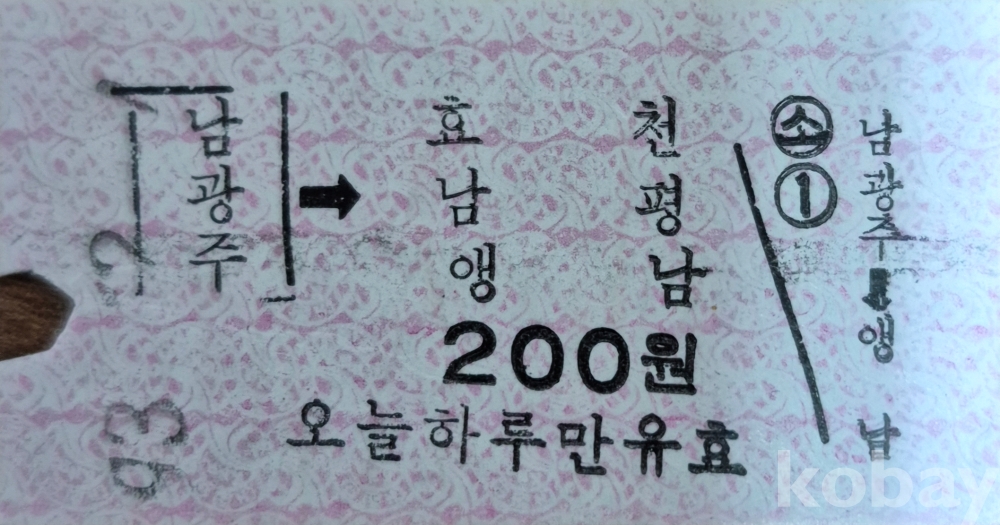 비둘기호 승차권 남광주-앵남 일반입니다.