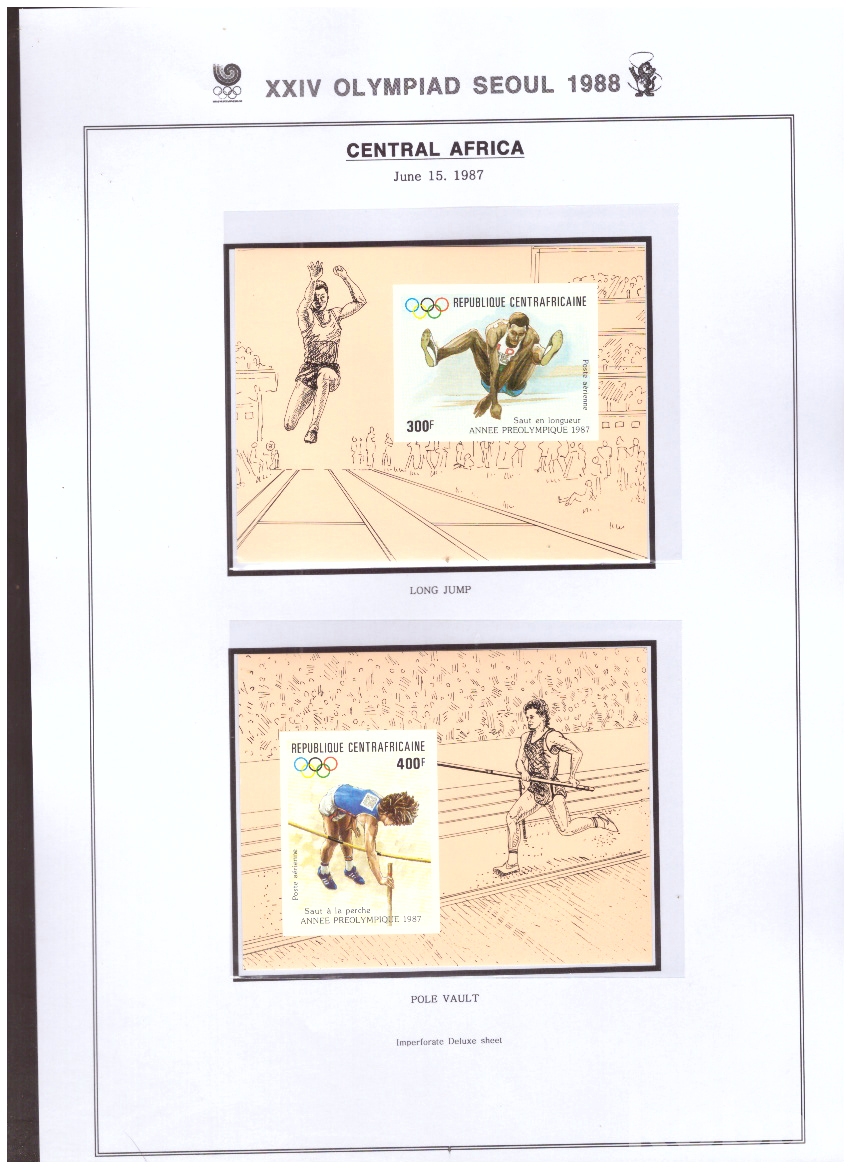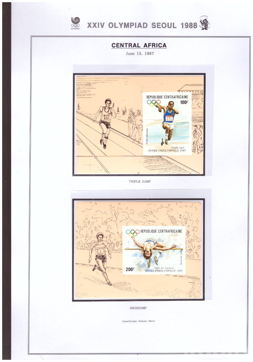 (서울올림픽) Central Africa (중앙아프리카) 1987.6.15 3단뛰기외 4완 무공 deluxe sheet MNH
