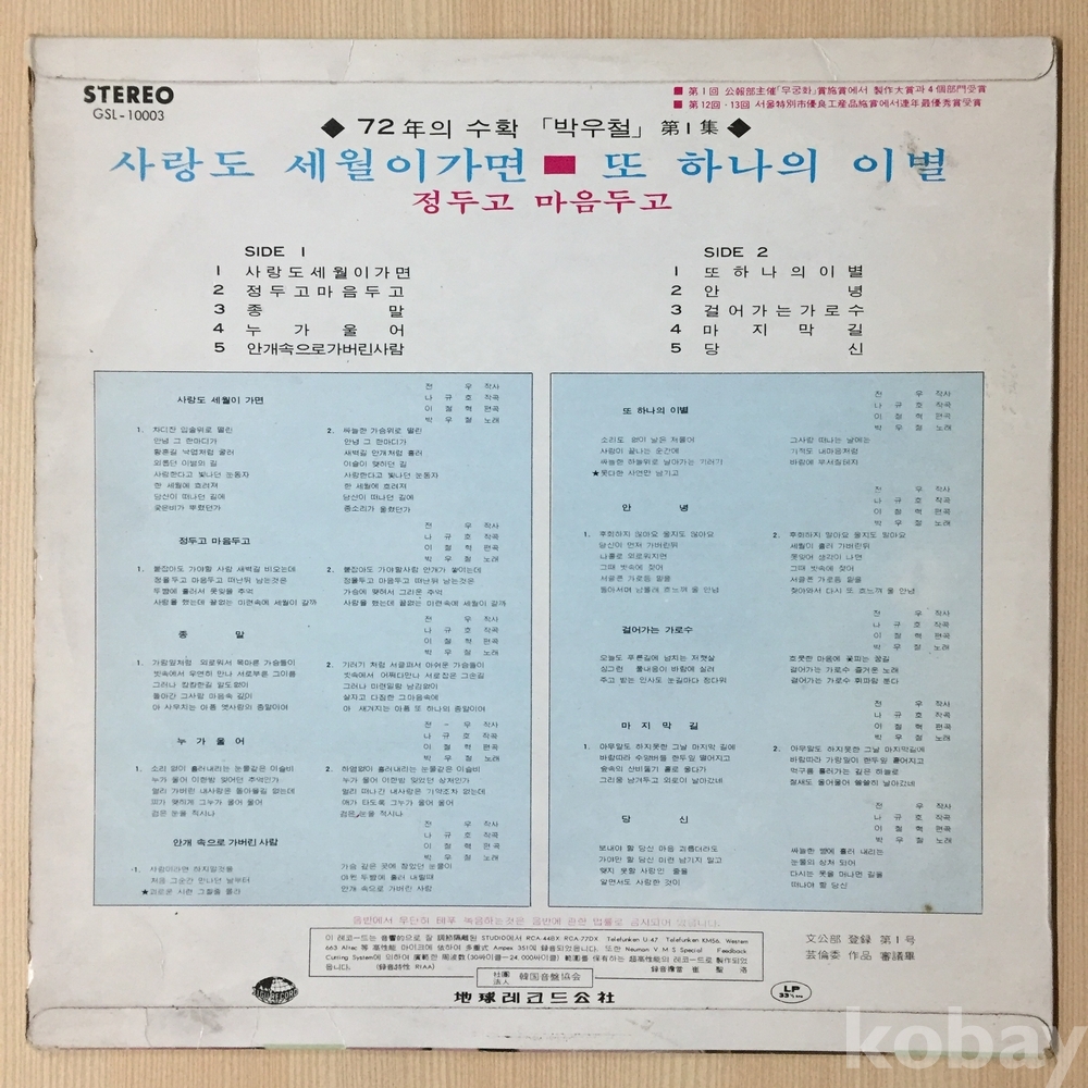 . 가요음반 대부분은 휘어짐이나 손상을 방지하기 위해 무지싱글자킷을 하나 더 사용하여 보관되었던 음반들입니다.