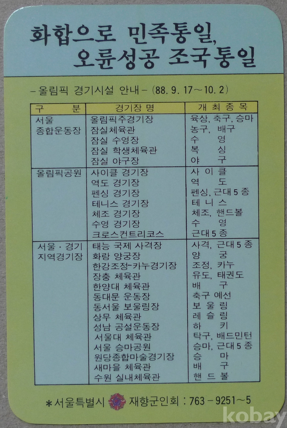 1988년 서울올림픽 경기 시설 안내 포켓 카드