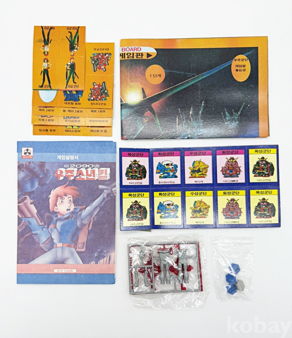 상품설명 | 1989년 KBS에서 방영된 애니메이션 <2020 우주의 원더키디>의 조립식 입체 인형이 포함된 보드게임이다. 본 상품은 방영 애니메이션 제목과 달리 '서기 2029년의 우주소년 킽'으로 되어있으나, 애니메이션 속 주인공의 이름은 동일하다. | ||