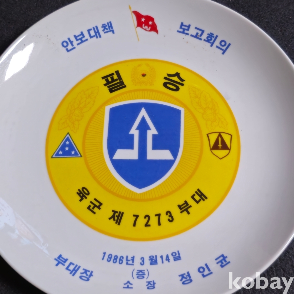 (((군자료/도자기접시))) 육군제7273부대 안보대책 보고회의 기념 도자기접시 (1988) (부대장 소장 정인균)