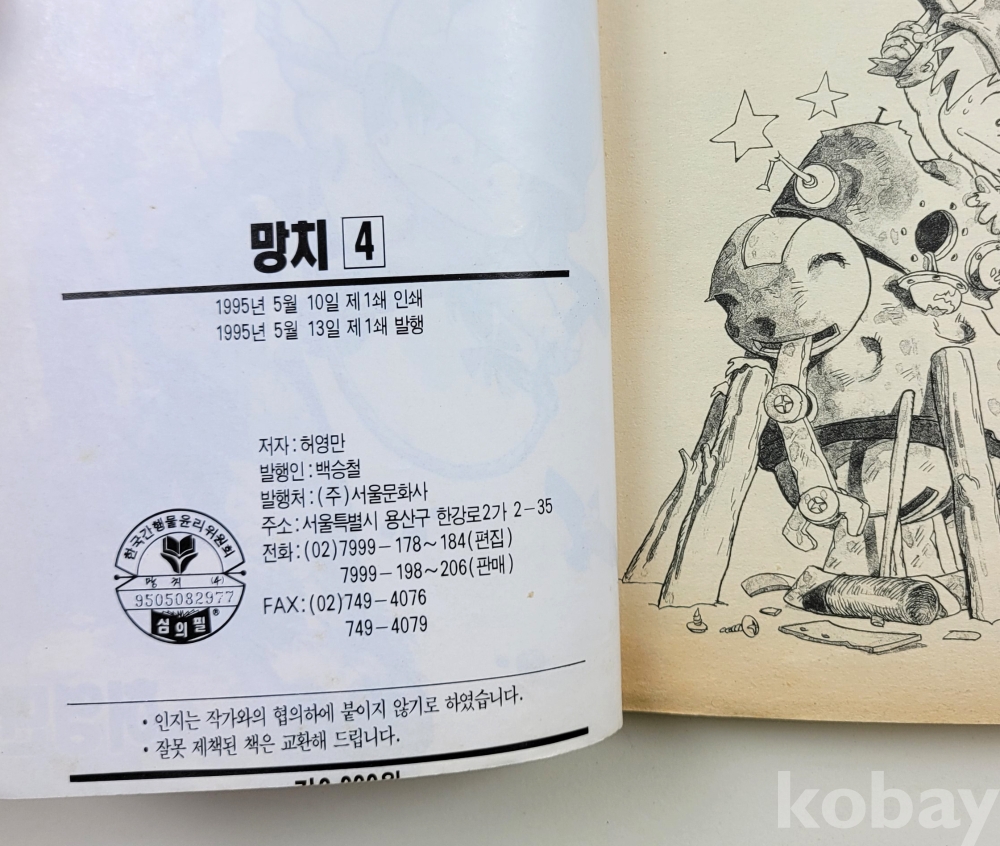 물 품 명 | [아이큐점프코믹스] 허영만 / 망치(2) : (1~6)완결 총6권 / 1995년 초판본 / 서울문화사 |