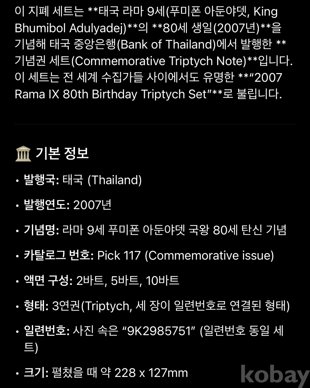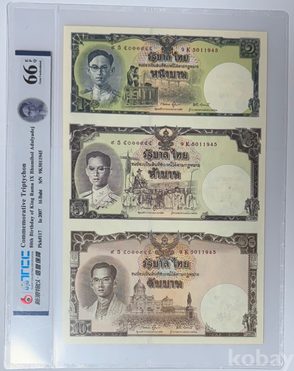 [대형] 태국 2007년 “푸미폰국왕 80세 기념” 3종 연결권 TCC 66 EPQ